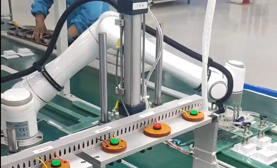 因此,客戶希望引入?yún)f(xié)作機器人來逐步替代人工進行電源開關(guān)取放及檢測。艾利特協(xié)作機器人結(jié)構(gòu)緊湊、體積小巧、人機交互安全,成自動化產(chǎn)線改造首選。