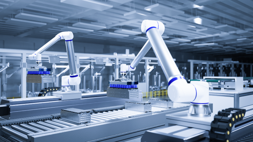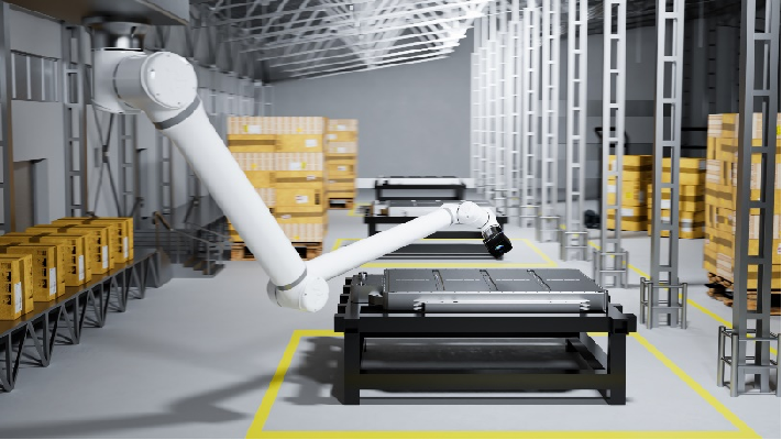 PACK段:主要應用于極耳裁切、清洗、貼膠、檢測等工藝段,該工藝段對臂展要求高,協作機器人臂展較大,部署更便捷。