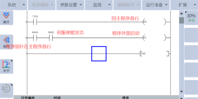 注:以上“X004”是機械臂開機后一鍵啟動的觸發(fā)信號,這個信號可以更改為虛擬信號觸發(fā),也可以外部PLC觸發(fā)。