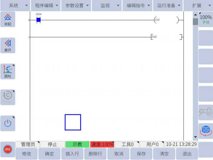 當X004 置 1 時,后觸發防護停止暫停,當防護停止信號重新連接后,任務能自動恢復運行。