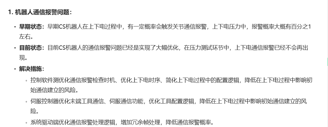 (14)是確實通信質量比較差,不定期的偶發通信,這種可能是硬件存在問題,此類報警如果還伴隨這樣的日志產生,那可以明確通信質量有問題。可以先嘗試通信插拔通信線,航插等接口,然后再驗證是否還存在問題。持續存在的話,可能就是硬件故障了。