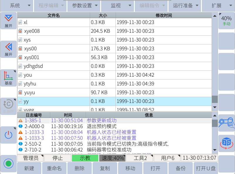 用戶plc一般只用作簡(jiǎn)單的機(jī)器人功能配置,不能當(dāng)做邏輯控制器使用,編寫復(fù)雜程序會(huì)導(dǎo)致無(wú)法保存。