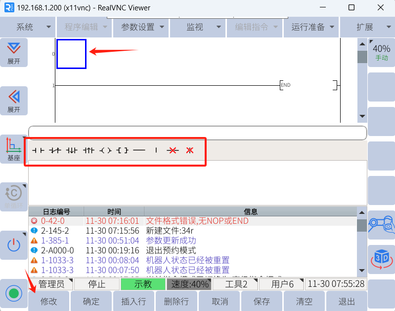 2.進(jìn)入程序后,編輯指令功能塊亮起,此時(shí)所有的JBI指令都在編輯指令里