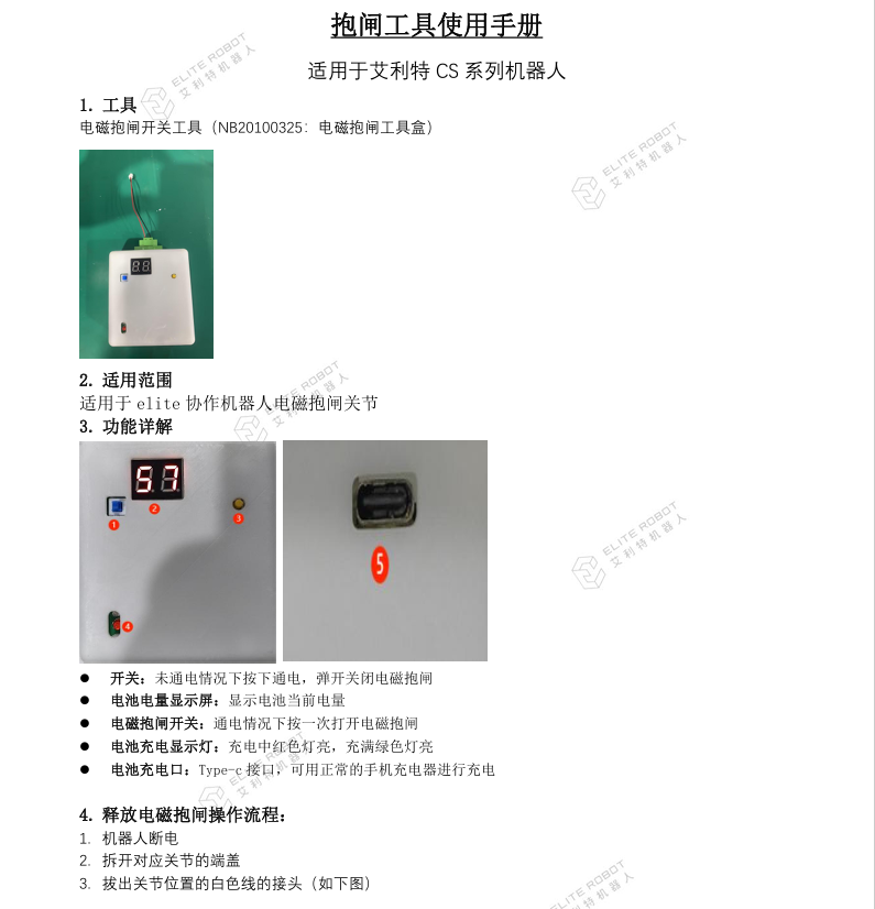 本篇文檔介紹當前CS系列機器人的抱閘類型、查看當前抱閘類型及松開抱閘的方法