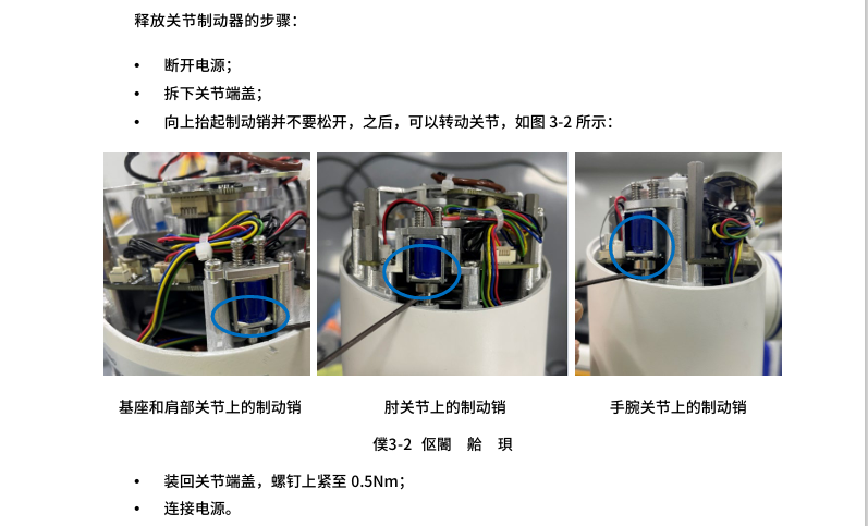 - 伺服關節損壞報警異常后無法通過以上松開抱閘方法操作,需手動松開,具體參考CS服務手冊操作指南