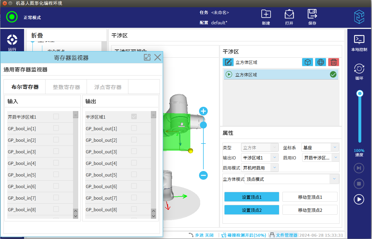 在多個機械臂互相協同作業時,有共同的取料區域/放料區域,需要一個互鎖信號/需要給PLC發送信號(此信號無論是否處于自動運行模式都可以自動輸出信號)