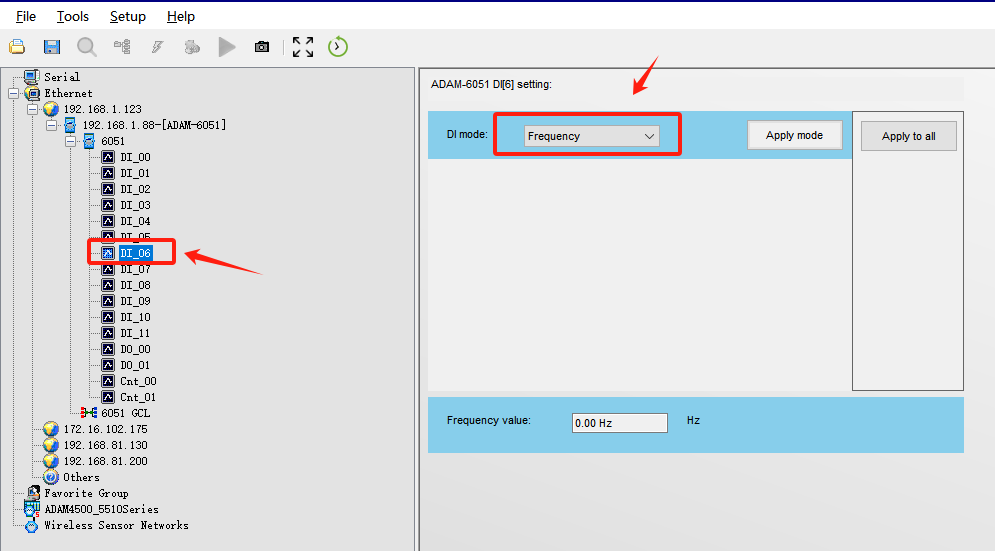 點擊下方6051,會彈出輸入密碼,密碼為00000000,然后依次配置下列接口類型,完成后點擊后面Apply mode.