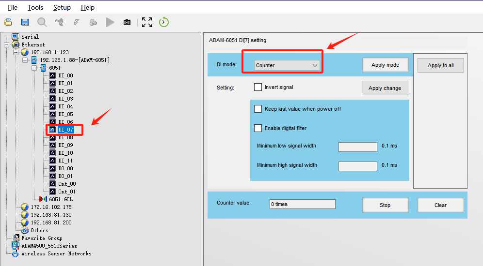 電腦IP與模塊的IP設置為同一網段,然后打開軟件,按下圖操作開始進行
