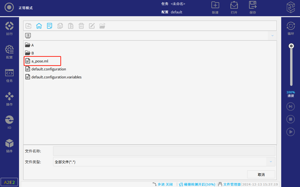 4.執行機器人程序,機器人的運行速度百分比可以調到20%以下。執行完成后,會在在如圖片所示的目錄下生成一個.ml后綴的文件。