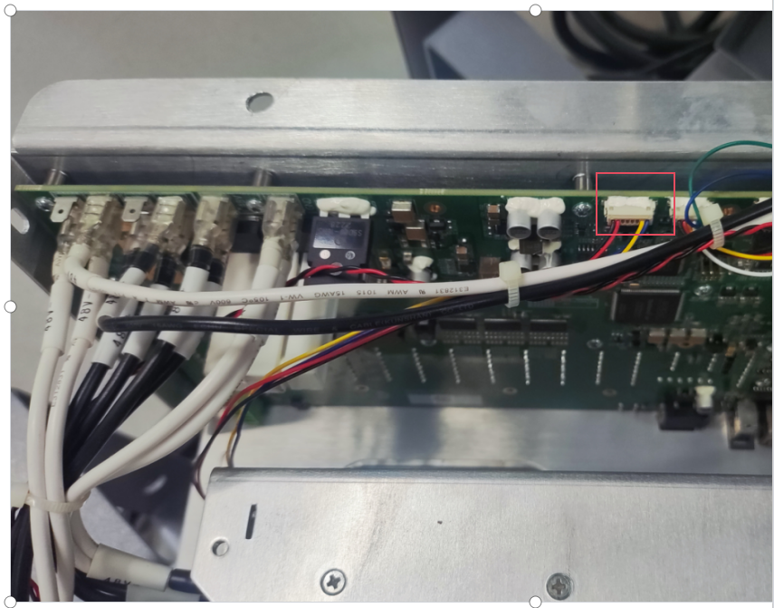 第二步:將機器人控制柜電源開關(guān)打開,將safeio板上啟動48V開關(guān)電源的線束拔掉,如圖-3紅框標記處,用萬用表測量是否有48V輸出,測量點如圖-4紅框標記處。如果有48V輸出,說明開關(guān)電源沒有問題,safeio板出現(xiàn)故障需要現(xiàn)場更換或者返廠維修;