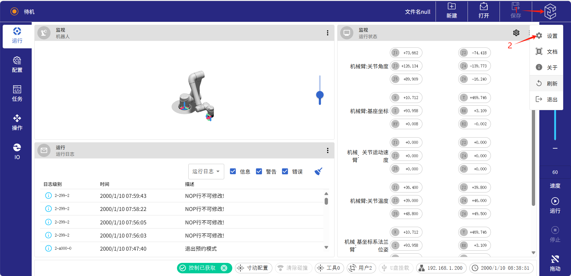 ● 先登錄網頁版示教器,具體步驟可看下面文檔【2.2 筆記本電腦連接網頁版示教器】操作步驟