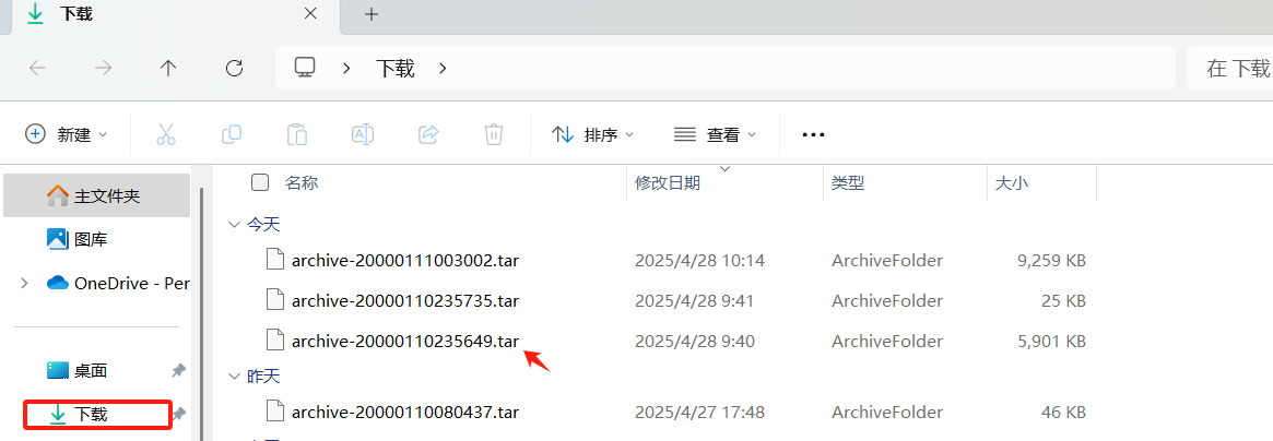 ● 選擇需要備份的文件,下載到終端。在電腦下載欄【.tar】后綴的文件,就是已選擇備份的數據。