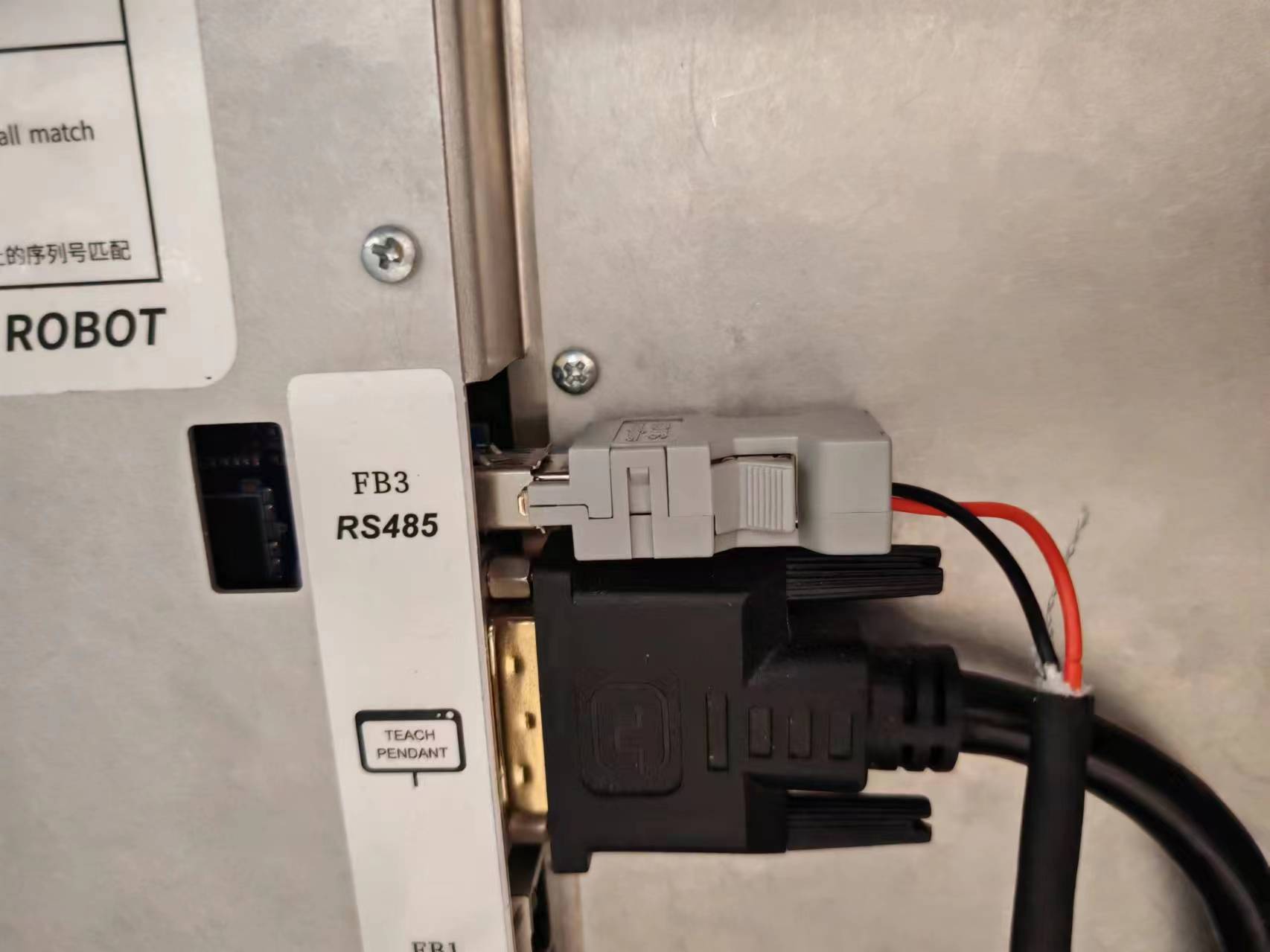 在控制柜接口處我們可以看到RS485接口,該接口就是我們的485接口,modbus_rtu時用到該接口,其中針腳3對應485-,針腳4對應485+,如下圖。