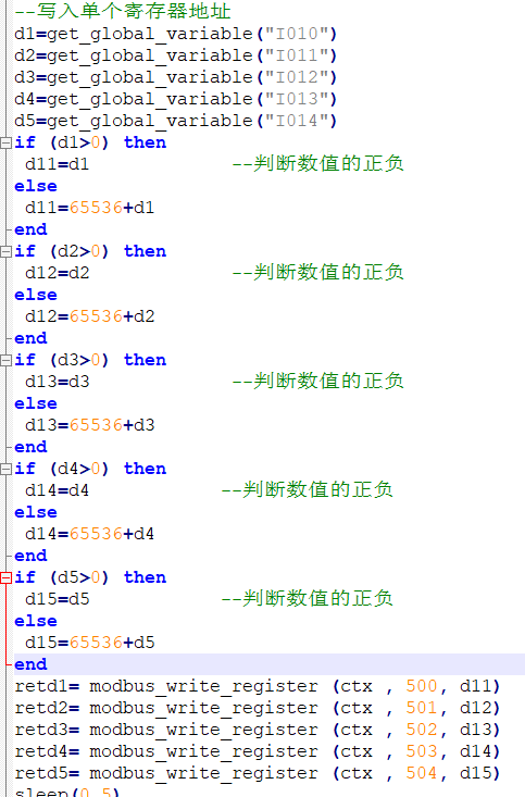 讀取400開始的5個寄存器,分別將寄存器數值存入全局變量I000-I004中