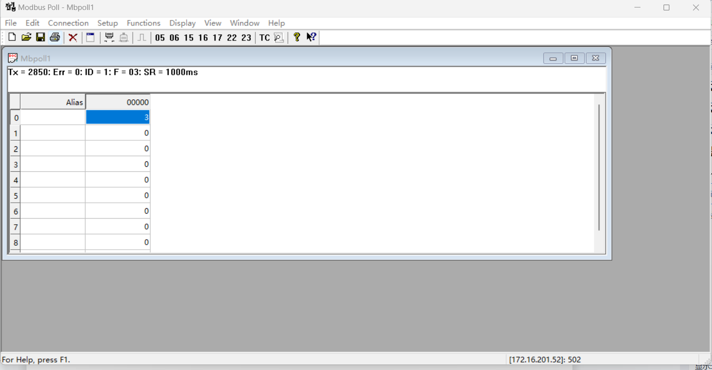 modbus_read_register 讀單個寄存器數值。功能碼03
