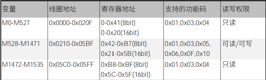 其中M變量支持的功能碼如下圖: