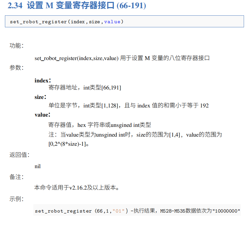 目前Elite機器人支持對虛擬變量M的操作,M為BIT型變量。單個M變量為線圈,多個連續的M變量可為寄存器 。