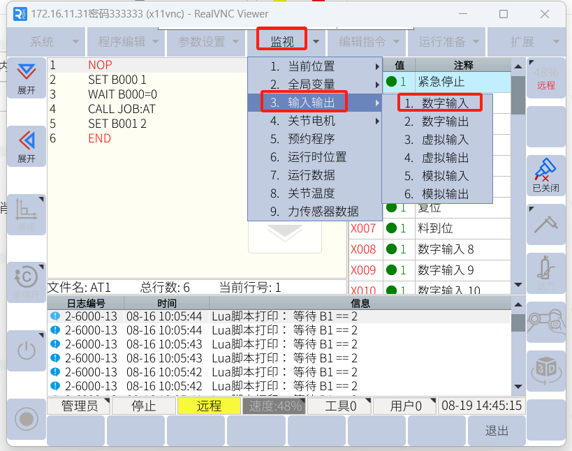 打開機器人監(jiān)視-輸入輸出-數(shù)字輸入