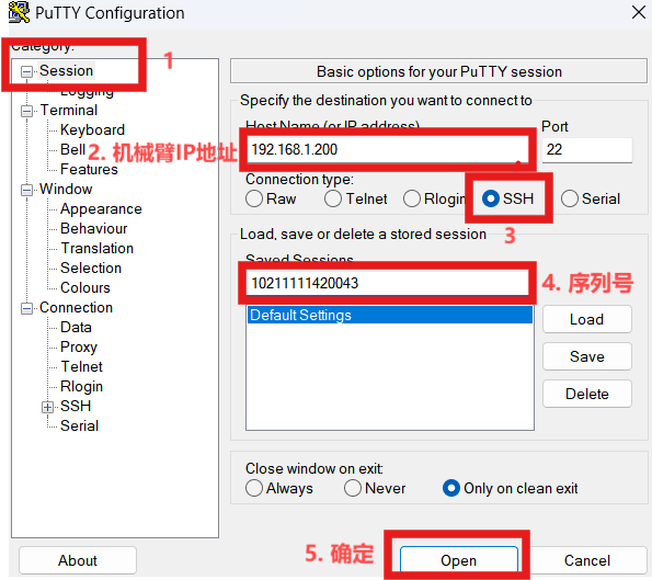 2. 輸入機器人序列號,點擊確定(會彈出Linux指令輸入界面)