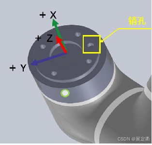 2. 注意安裝方向,力控傳感器的X,Y,Z方向要與機(jī)械臂的工具坐標(biāo)系方向一致,可以參考下圖確認(rèn)安裝方向