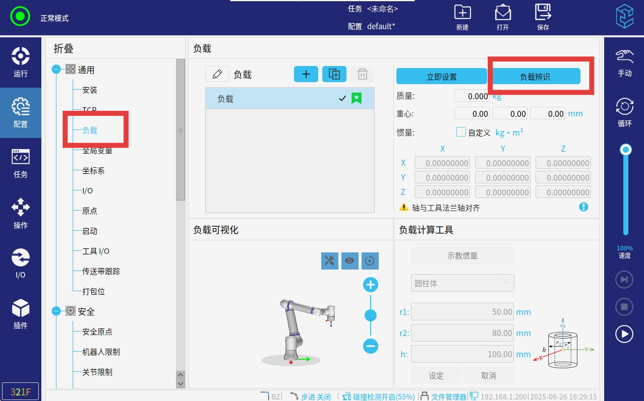 1. 檢查負(fù)載設(shè)置是否為0,將負(fù)載設(shè)置為0后,末端工裝夾具也要拆下來(lái),只帶力控傳感器。
