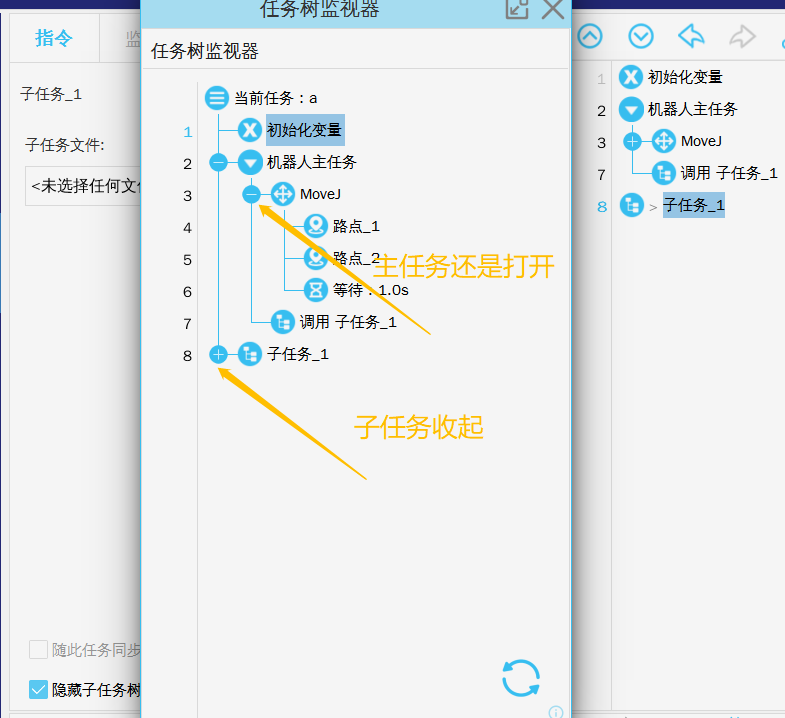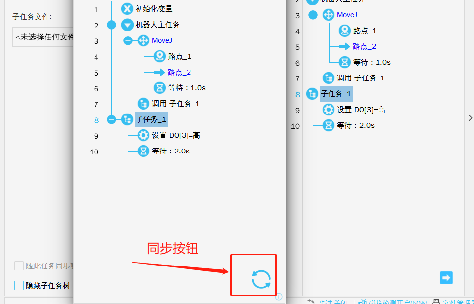 ● 同步按鈕只能同步子任務樹狀態(參考示例)