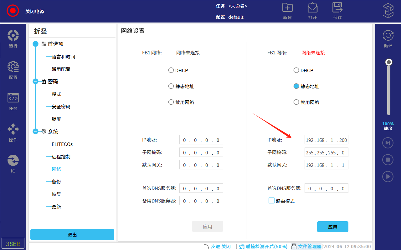 3. 選擇靜態(tài)地址,設(shè)置FB2網(wǎng)口的IP