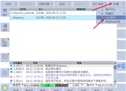 ● 腳本導入后,就可以配置腳本進行使用;擴展(用戶工藝)->LUA腳本