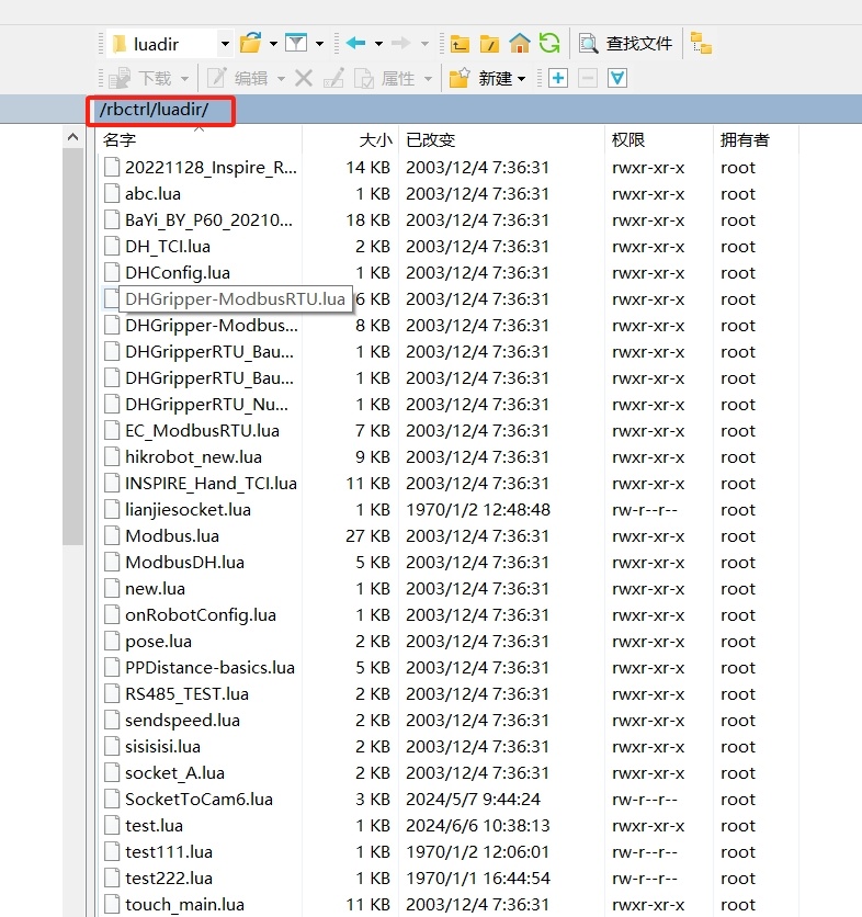 在rbctrl/luadir文件目錄下,是機(jī)器人的腳本文件,腳本語言是lua