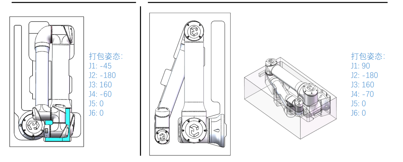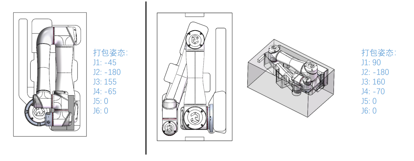 打包姿態角度:J1: -45 J2: -180 J3: 150 J4: -60 J5: 0 J6: 0